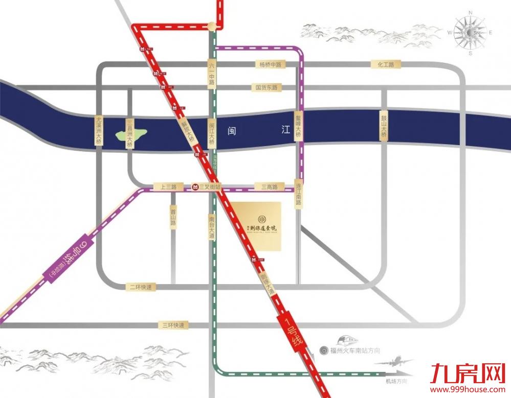 | 自驾 | 项目坐落于福州市仓山区则徐大道东侧高湖路北侧,位于福州首条环城公路-二环路内,咫尺地铁一号线三叉街站。项目紧邻则徐大道,可快速抵达各区;对外可通过二环、三环连接长乐机场高速、福泉高速等。未来还将规划3条轨道线路交汇于此,包含地铁1号线、建设中的滨海快线,规划中的地铁9号线,其中滨海快线可快速接驳长乐机场。(地铁9号线规划信息来源于福州市人民政府网站,仅供参考) |